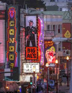 Walter is one of the most brilliant people I’ve ever met, and his intelligence was completely applied in the street trades of booze and women and separating men from their money. He comes across like an incredibly charming “wise guy” right out of “the Godfather”, though as he explained to me, the Mob (capital “M”) never got into the San Francisco scene. Evidently, when Capone sent out scouts in the late ‘20s and early ‘30s, the unfortunate emissaries would be met at the train station by the North Beach Italians who had succeeded the Barbary Coast sin salesmen; the boys from Chicago would be given return tickets and invited in no uncertain terms not to alight from the train lest they be bathing in the Bay with concrete bedroom slippers on. So organized crime didn’t get a foothold in San Francisco as the locals were quite happy with their arrangements with the cops and city hall and the bootleggers bringing in Canadian whiskey.